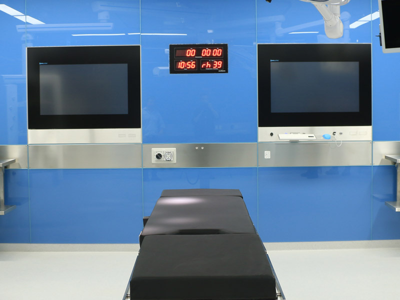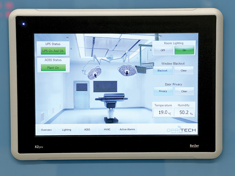 O.R System Controls have been developed in-house by Opritech and use an intuitive in-wall touch panel interfacing with systems such as room lighting, surgical lights, AGSS, HVAC, UPS, Gas Alarms, Switch Glass Windows.