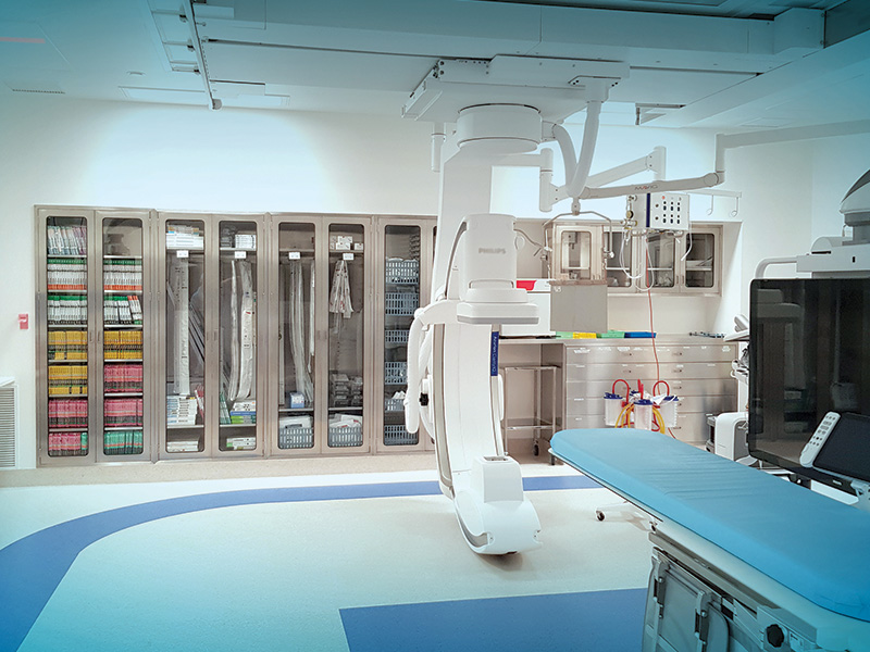 Modular sterile storage and chrome wire sterile storage rooms to ensure all equipment and consumables are located in a handy position to the O.R.